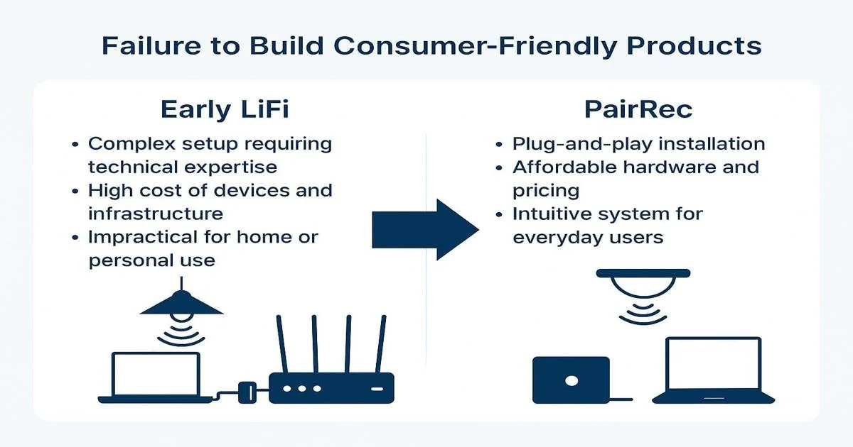 To truly understand why LiFi stumbled, we must look at how its early offerings misaligned with consumer needs and expectations. Then, we can see how PairRec is solving these problems with a practical, intuitive approach designed to win both consumer and enterprise trust.