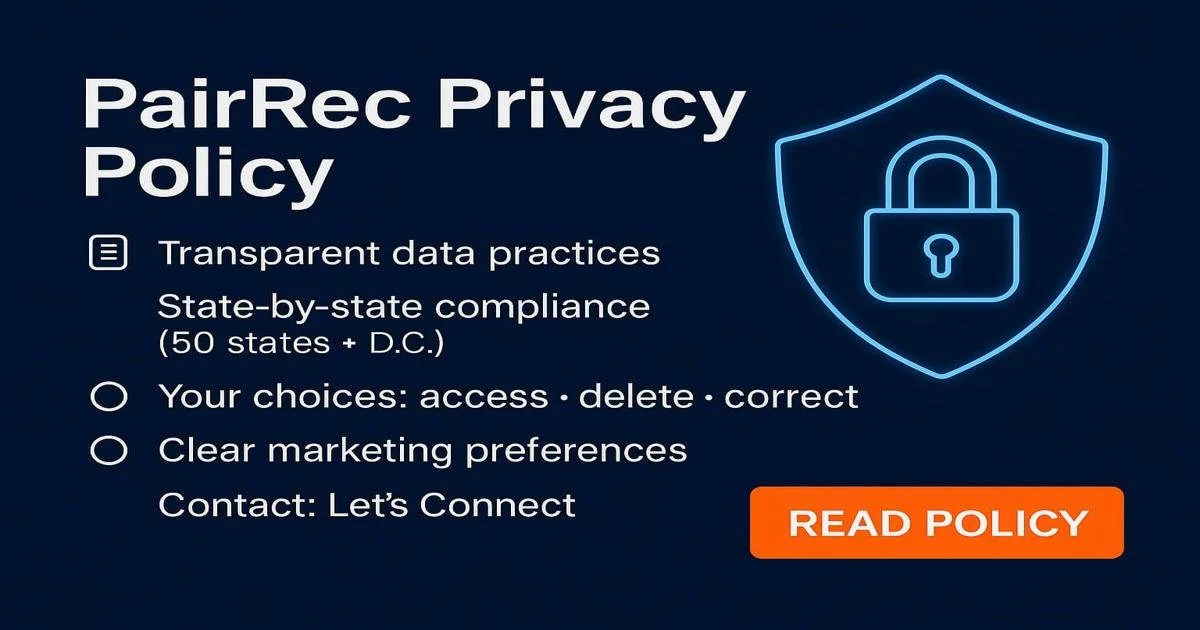This Privacy Policy represents our binding promise to you and is legally enforceable under the laws of your place of residence. As the regulatory environment evolves, PairRec will continue to update this policy, not only to meet new standards, but to surpass them—because your privacy isn’t just a requirement. It’s a principle. Thank you for trusting us to protect what matters most.